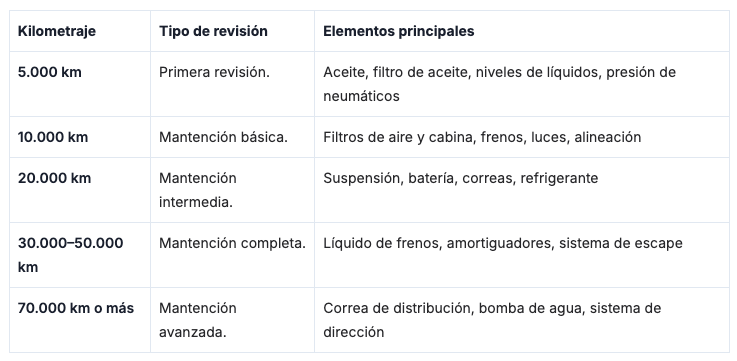 Este calendario permite mantener un vehículo en condiciones seguras y evitar reparaciones costosas a largo plazo.